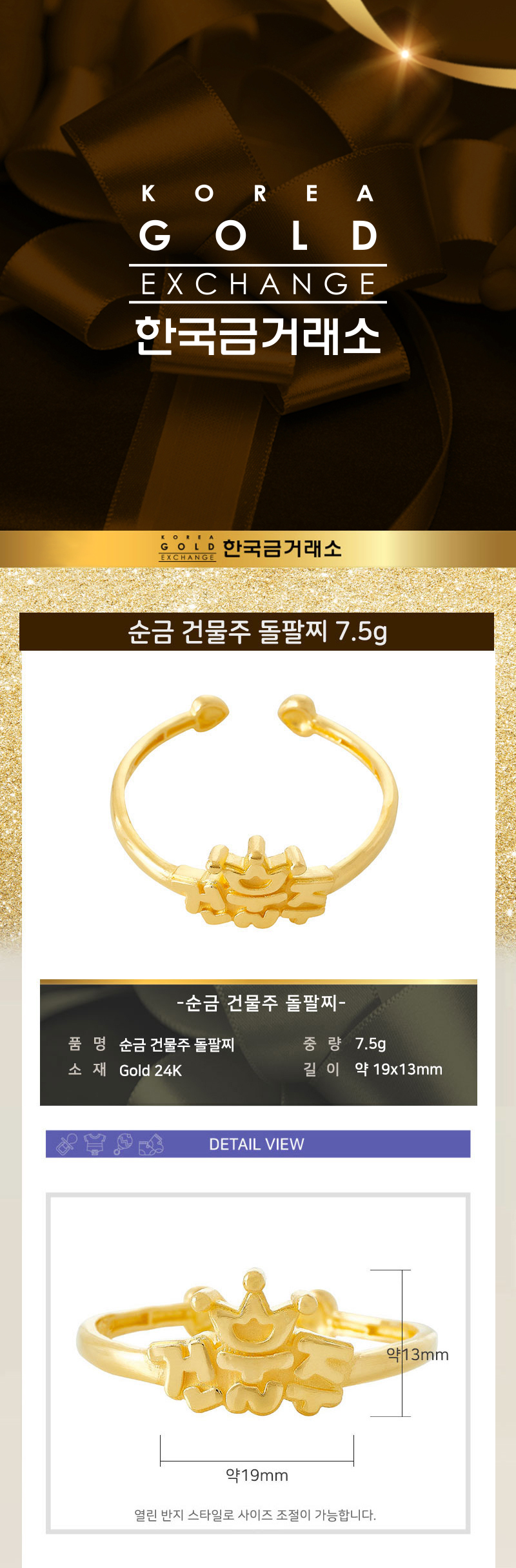 순금 건물주 돌팔찌 7.5g